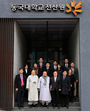 ▲ 학교법인 동국대학교(이하 동국대)은 주요 인사들이 동국대학교 전산원(이하 동국대 전산원)을 8일 격려차 방문했다고 9일 밝혔다. 방문 주요 인사로는 동국대 이사장 성타스님, 사무처장 종민스님, 법인 총무부장, 사업부장 등이며, 동국대 전산원에서는 박민영원장을 비롯해 각 부서별 팀장과 교수, 교직원이 함께했다./동국대 전산원